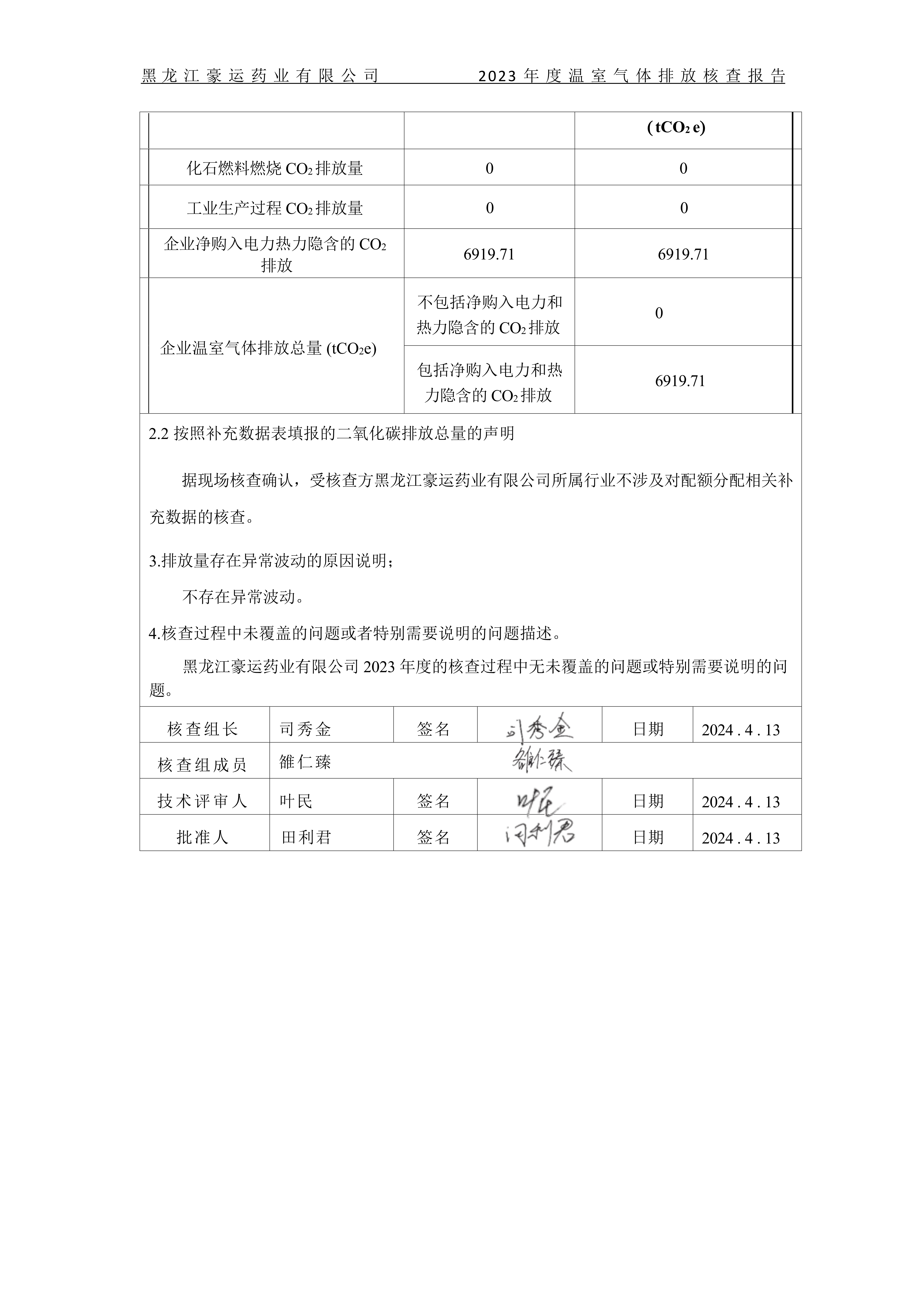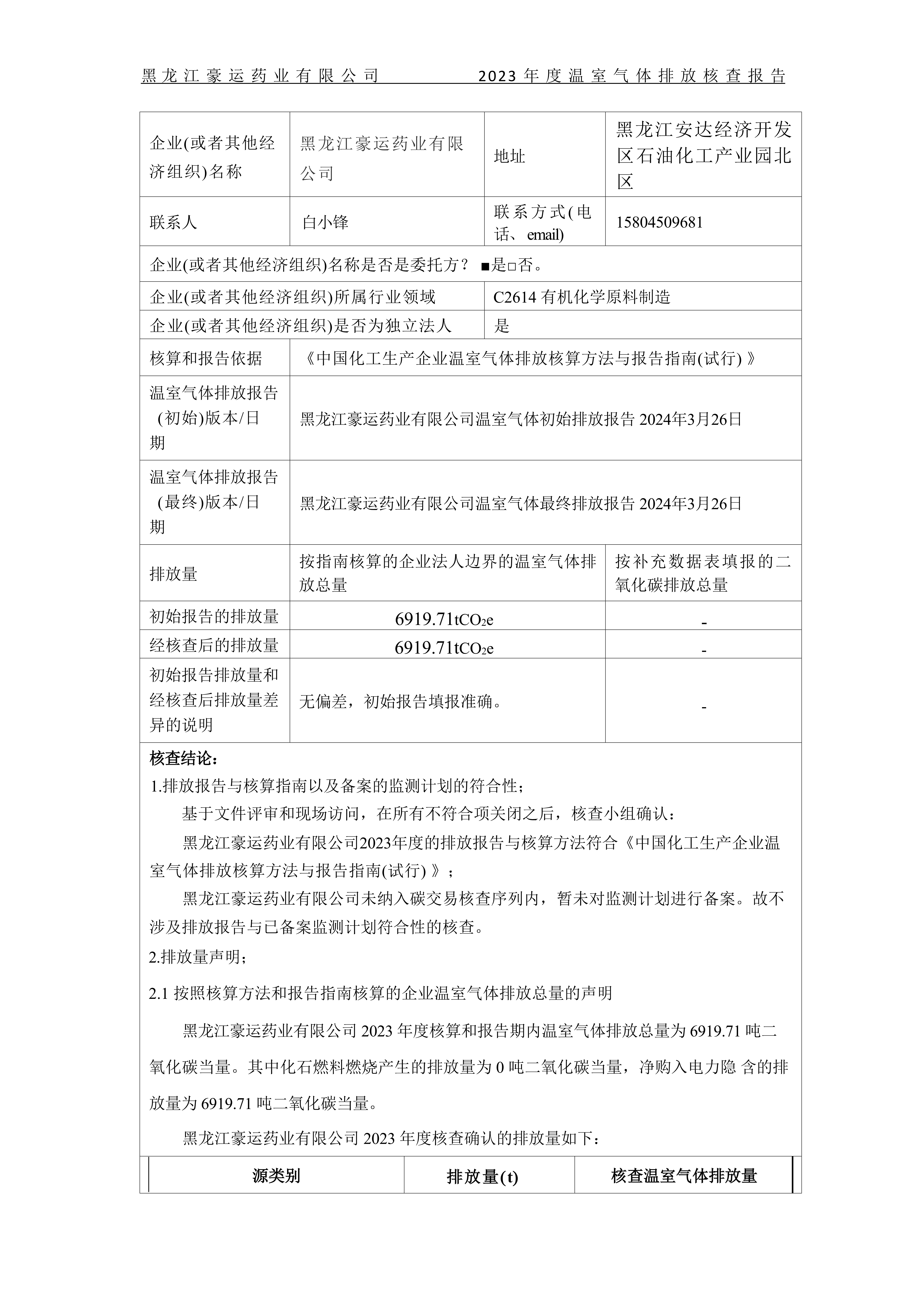 溫室氣體排放核查報告